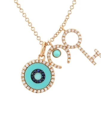 14K Gold Diamond Good Luck Charm Necklace