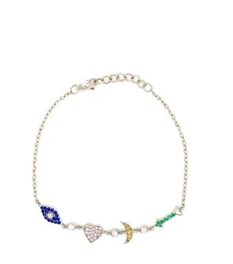 GEMSTONE BEZEL AND DIAMOND HEART TENNIS BRACELET