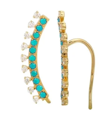 TURQUOISE DIAMOND EAR CLIMBER | TURQUOISE DIAMOND EAR CRAWLER