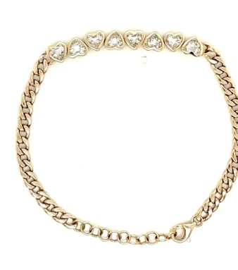 Yellow Gold Heart Charm Bracelet with Gemstone Accent