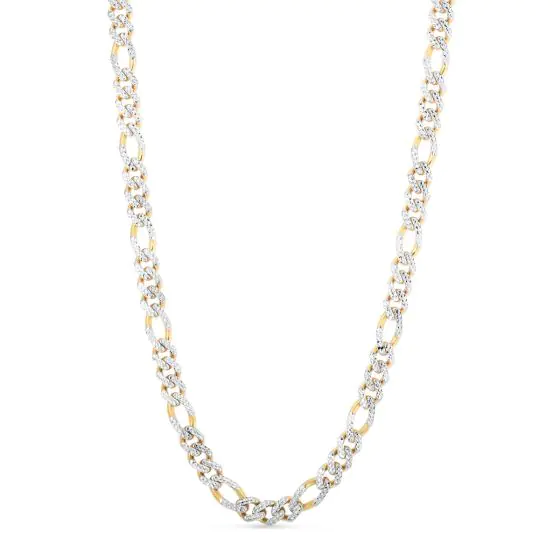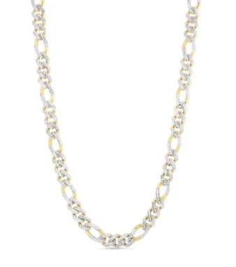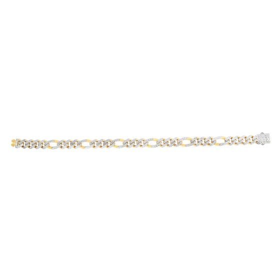 14K Yellow Gold 8mm White Pave Modern Lite Figaro Chain with Box (Both Side Push) Clasp. with Box (Both Side Push) Clasp.