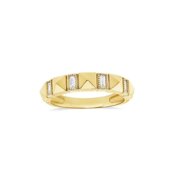 Turn up your style with our Solid Gold Diamond Pyramid Band. Featuring sparkly baguette diamonds, this trending band crafted from solid 14K gold adds sophistication whether worn alone or stacked with other bands to create your own unique collection.