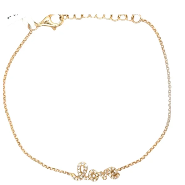 Our diamond script love bracelet says it all! made with 14K solid gold and white diamonds crafted into the word love, there’s no better way to say how much you care. Looking for a special gift or the perfect layering bracelet, it’s here.