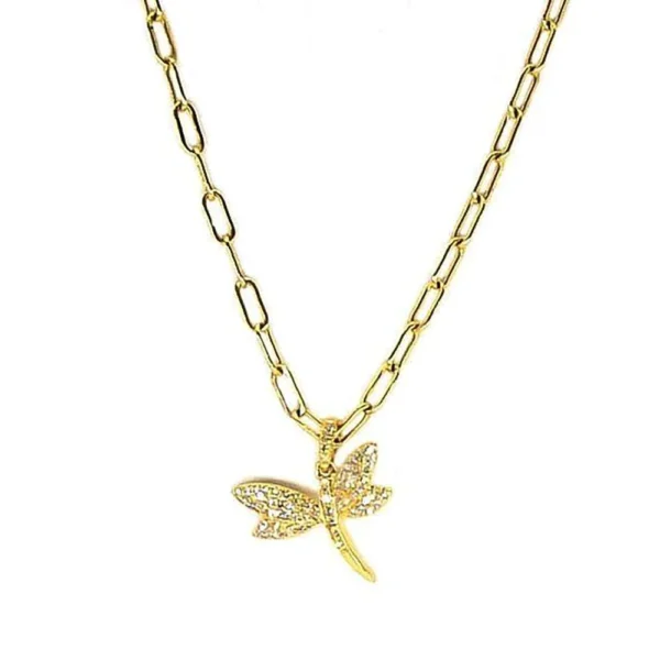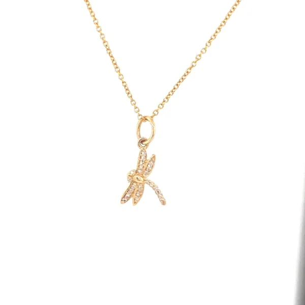 DRAGONFLY CHARM NECKLACE | 14K YELLOW GOLD | PAVE DIAMONDS