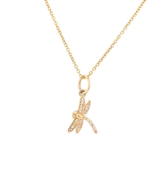 DRAGONFLY CHARM NECKLACE | 14K YELLOW GOLD | PAVE DIAMONDS