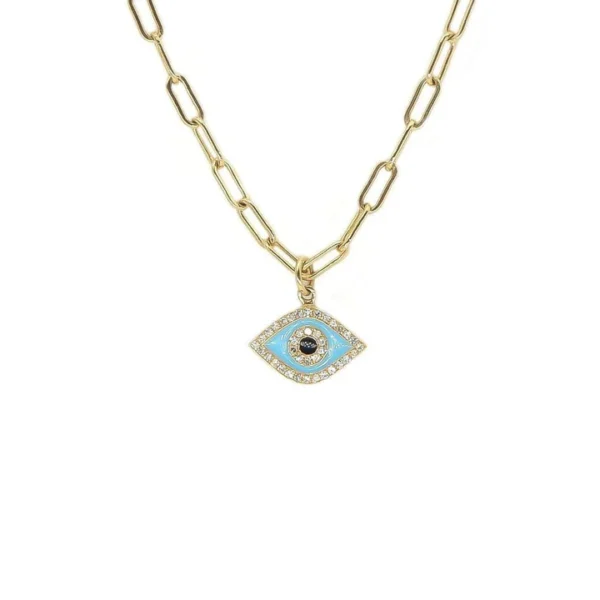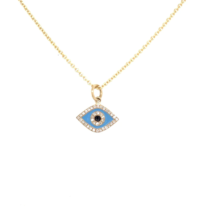 GOLD EVIL EYE CHARM NECKLACE | 14K GOLD | PAVE DIAMONDS | ENAMEL