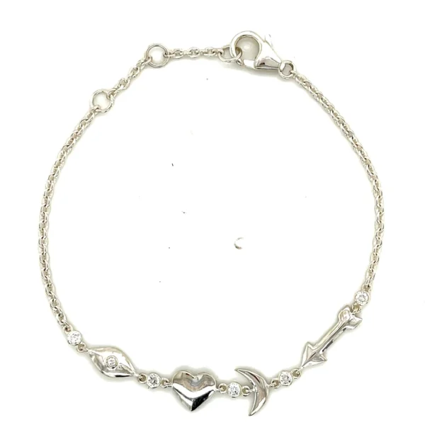 The most endearing way to show that special person that you love her! Our favorite Sterling Silver bracelet. Specifically made so that you can remind the ones you love with our most-loved collection of silver charms in the shape of an eye, heart, moon, and arrow representing “I love you to the moon and back!”
