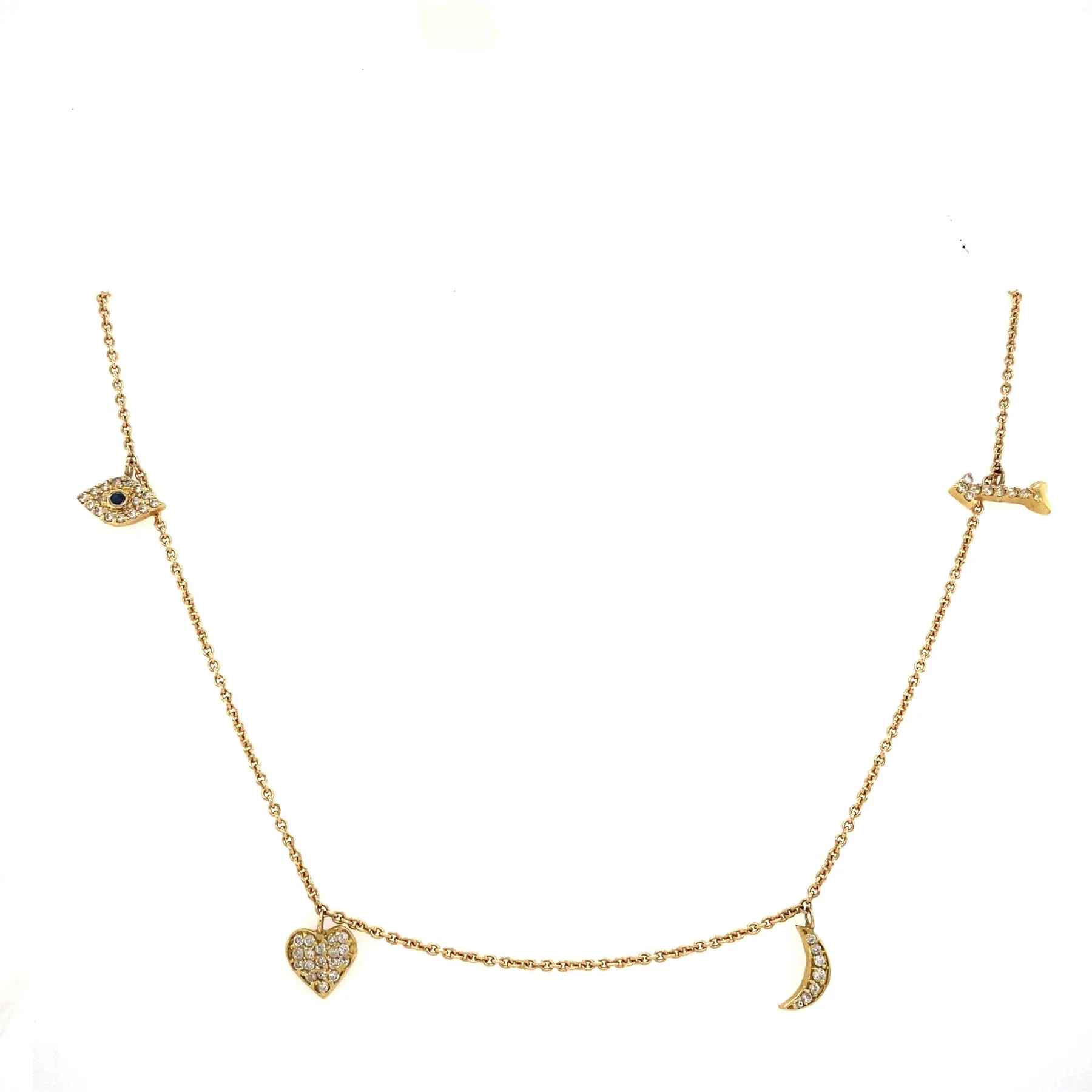 Dangling sparkling eye, heart, moon and arrow … shimmering symbols of love l, protection and comfort. The new addition to the most loved collection, I love you to the moon and back. Just another way to say I love you.