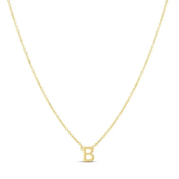 14K Yellow Gold Mini Initials Necklace with Spring Ring Clasp. Total length 18″ with jump ring at 16.”