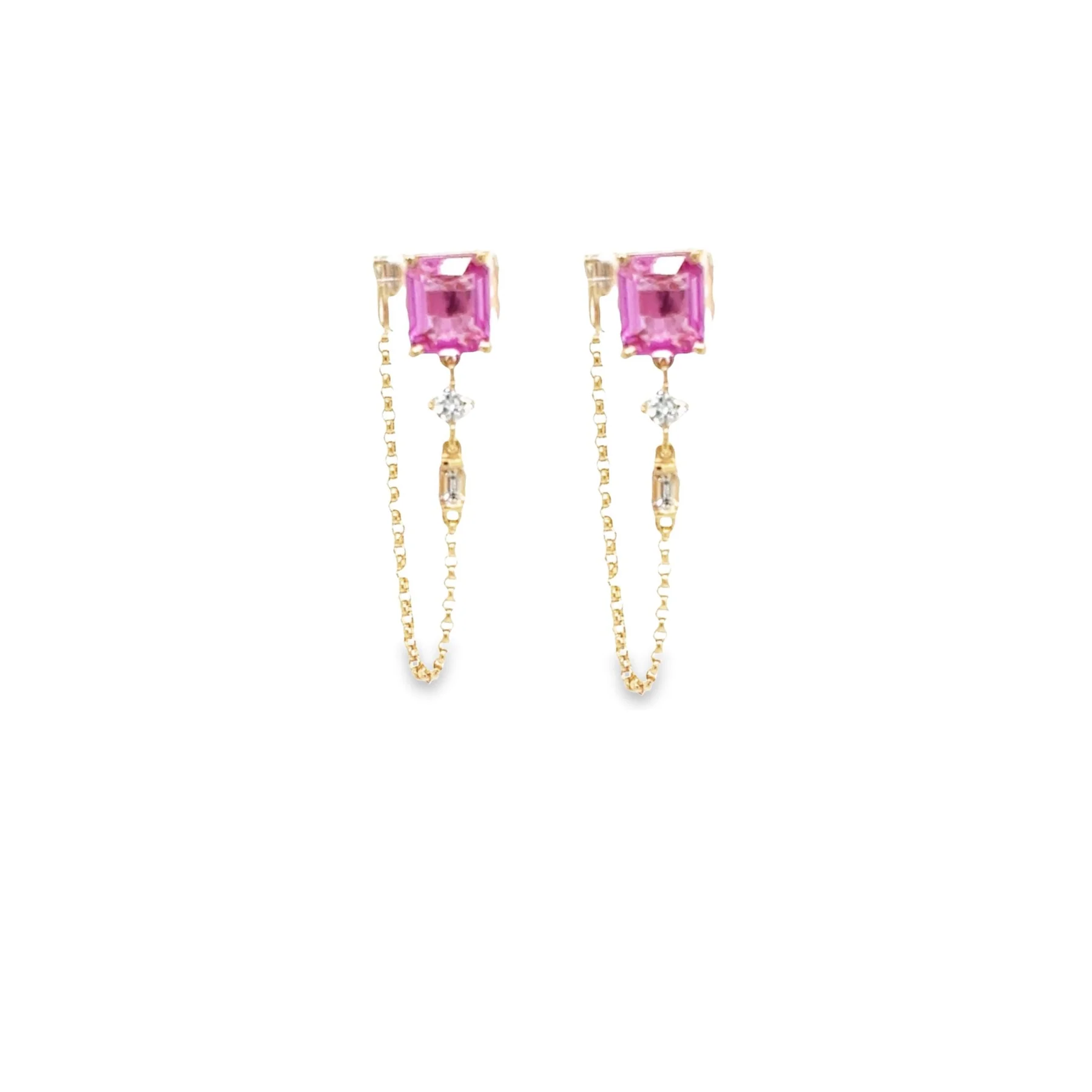 PINK SAPPHIRE DIAMOND CHAIN EARRINGS
