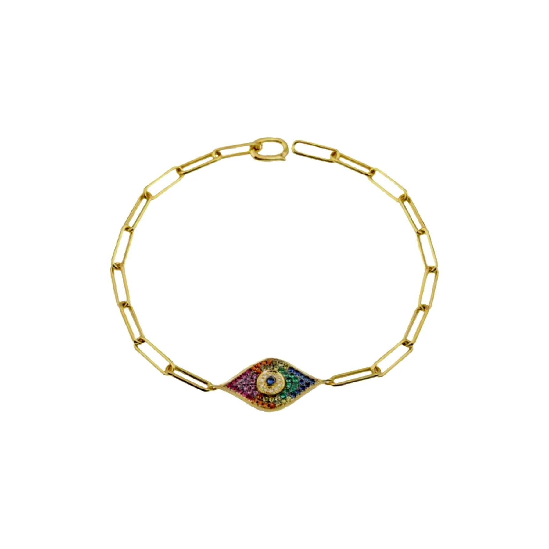 RAINBOW GEMSTONE EYE BRACELET | PAPERCLIP CHAIN