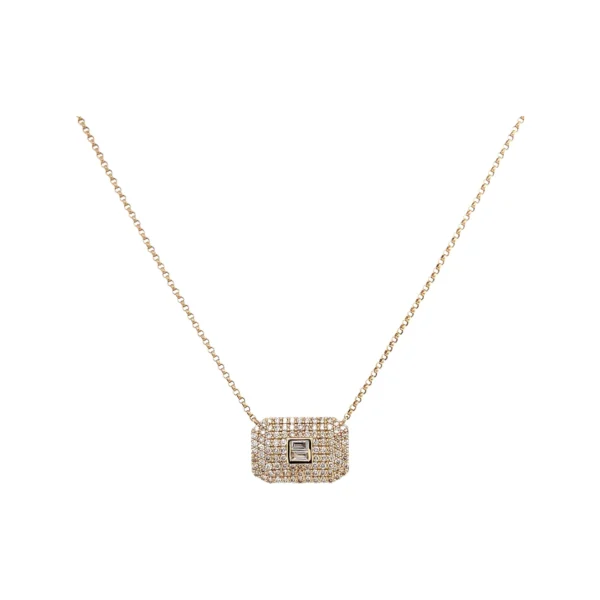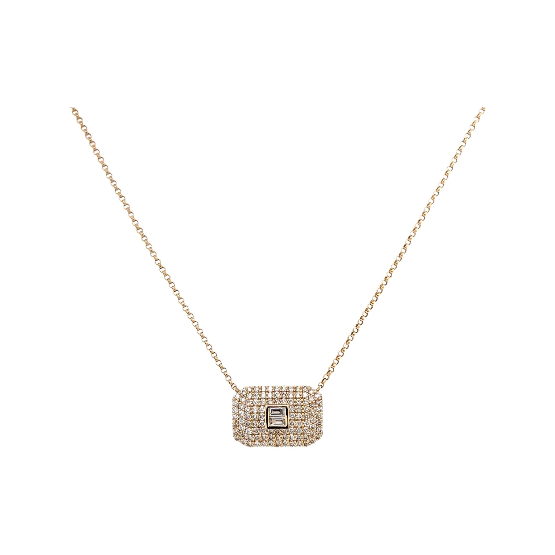 PAVE DIAMOND RECTANGLE 14K GOLD NECKLACE