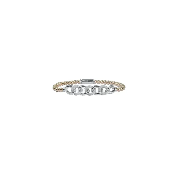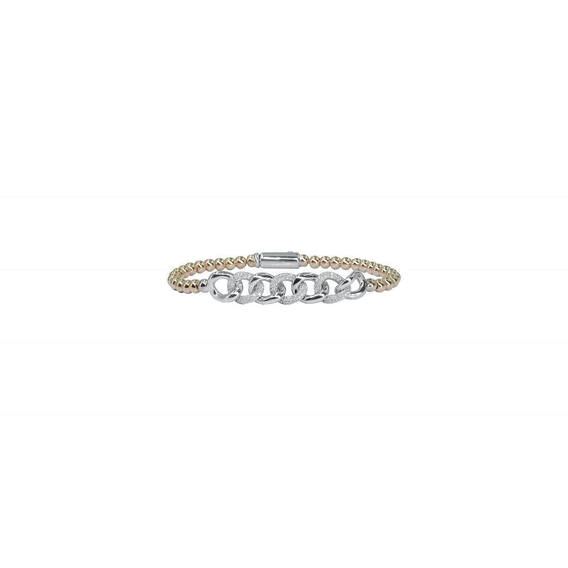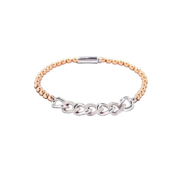 Expertly crafted from 18K rose gold, this beaded bracelet boasts a luxurious and radiant finish that captures the light with every movement. The unique design features stretch rose gold balls with a central white gold and diamond chain, creating a stunning contrast that enhances its beauty and sophistication.