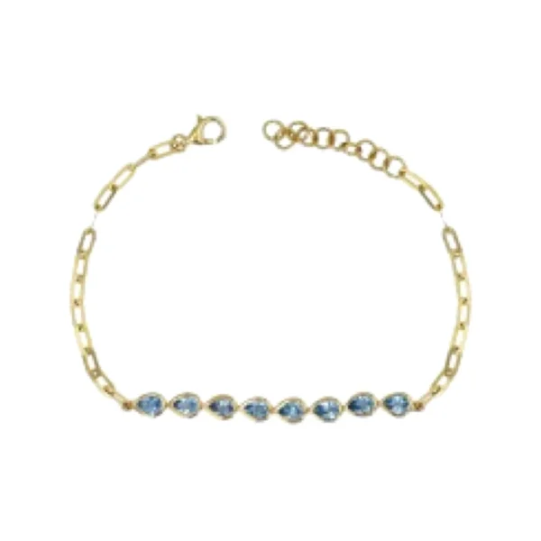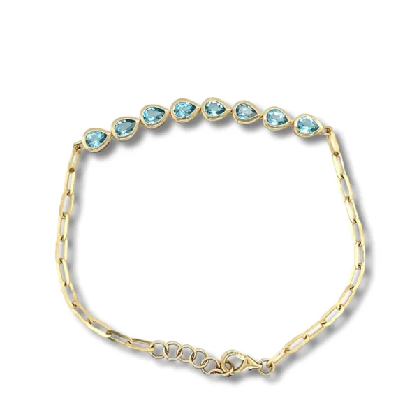 SEMIPRECIOUS PEAR SHAPED BEZEL PAPERCLIP BRACELET