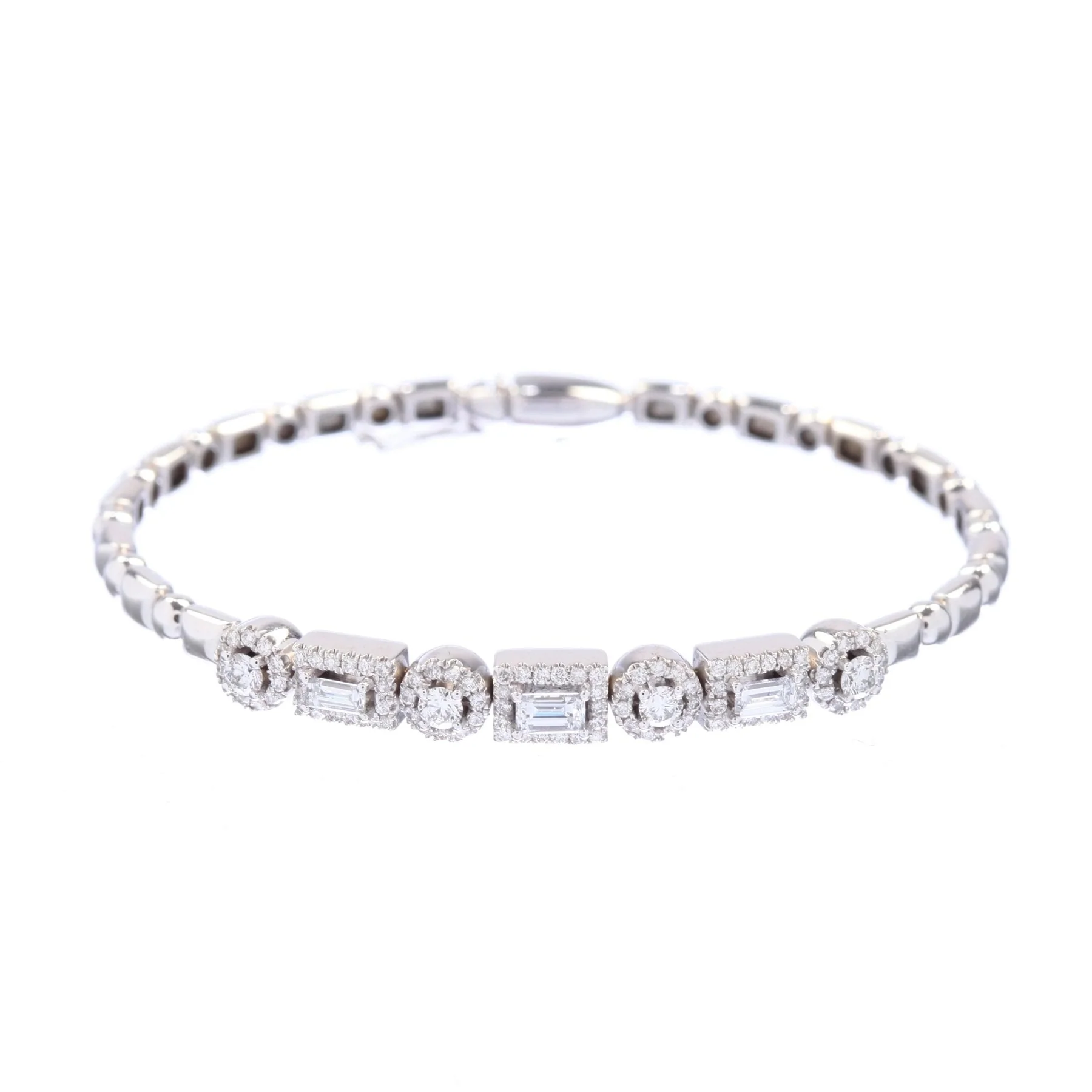 Timeless Elegance – White Gold Bracelet with Round and Emerald-Cut Diamonds